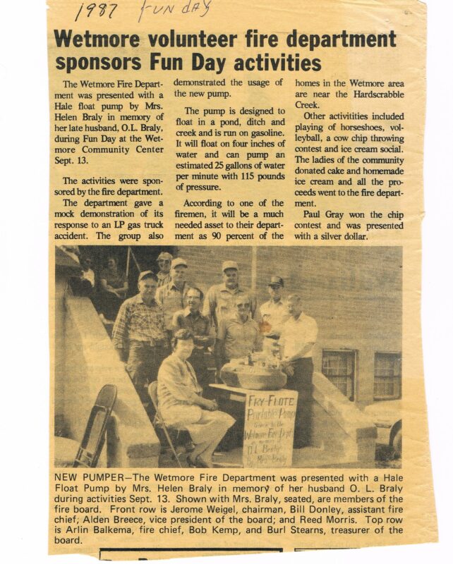 Read the History of the Wetmore Fire Department HERE