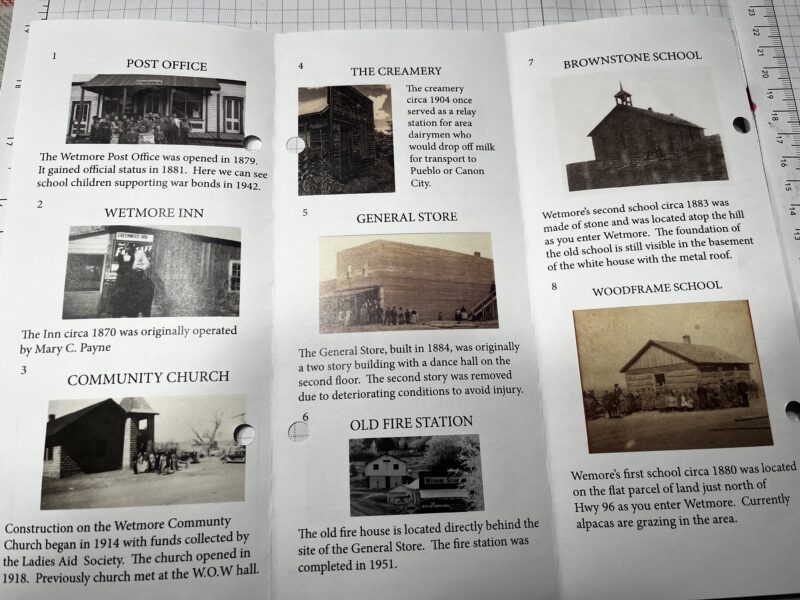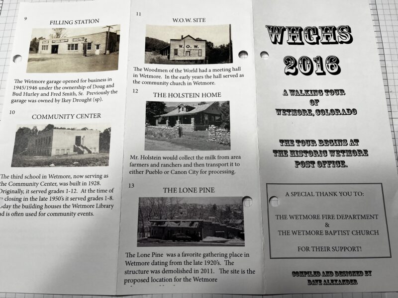 WHG&HS will start the tour at the Wetmore Post Office at 9:30 am on Saturday, July 9th. Spirits of the Past will tell stories at some of the sites, including the Creamery, Wetmore Community Church, Wetmore Community Building, and the Wetmore Post Office and History Center.