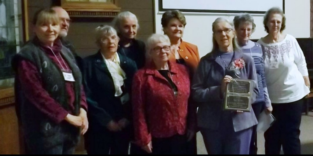 WHG&HS President Margaret Storm received the Doc Little Award during the Jan 20 meeting of the Fremont Historical Society.