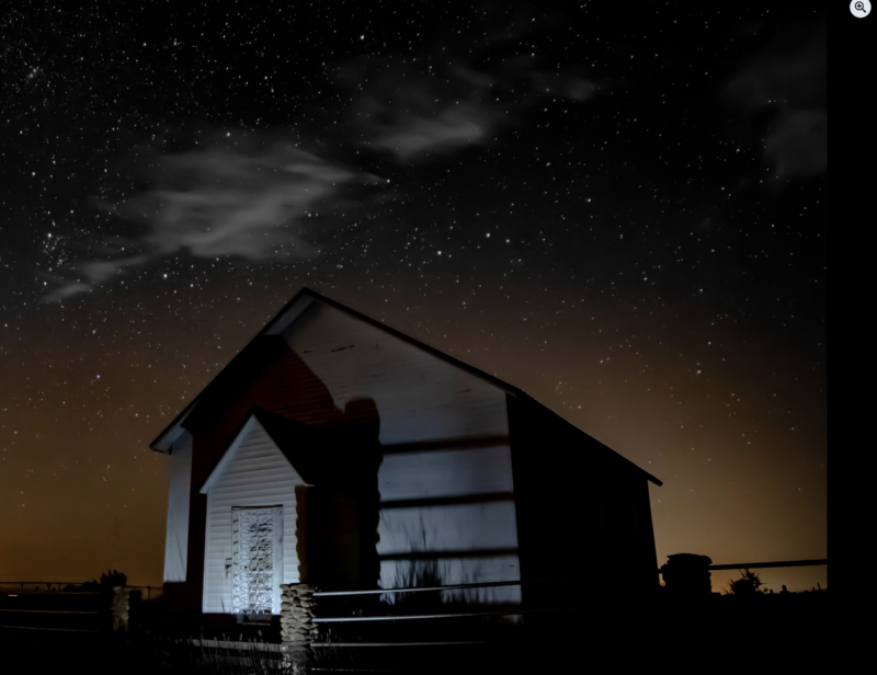 Ira Porter donated the land, and the church was built by the congregation. Construction was completed in 1873. The wood frame is assembled by mortised joints and wooden pegs. No nails were used in the construction. The floor joists are hand hewn lodge poles and pine logs with tongue and groove assembly. Square nails were used to attach the roof and siding. The pulpit and pews were handmade by the members. Vinyl siding was put on in the early 1980’s to help preserve it.